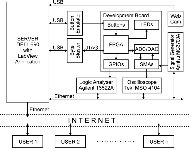 Súbor určený na konfiguráciu FPGA je prostredníctvom FTP prístupu odoslaný na server do vyhradeného adresára. Na serveri beží LabView aplikácia, ktorú je možné ovládať vzdialene. Prostredníctvom Labview aplikácie môže byť FPGA na vývojovej doske nakonfigurované.