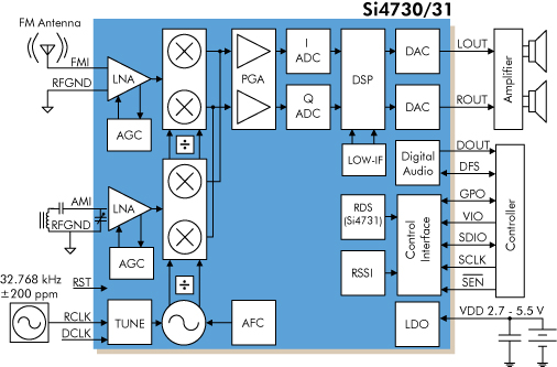 I²C-compatible 2-wire control interface, and a Si4700/01