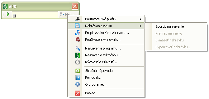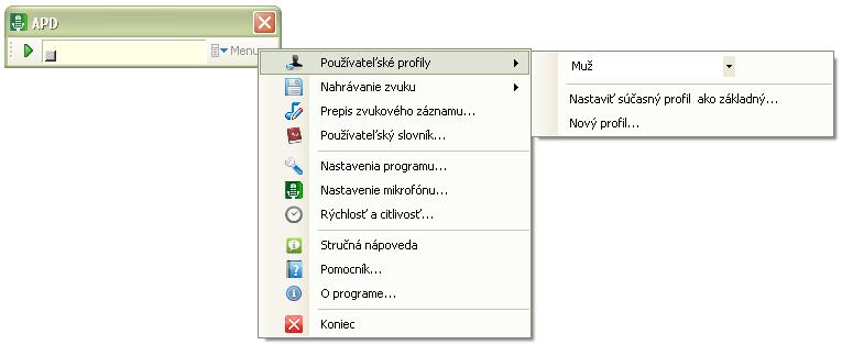 ► Hlavné menu systému APD