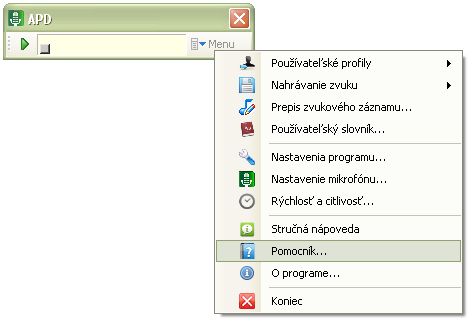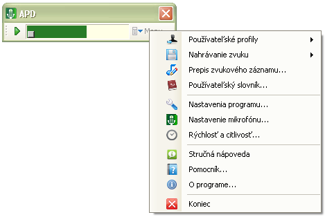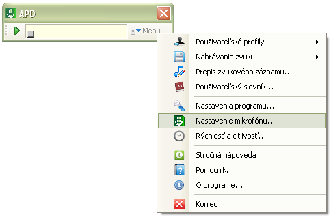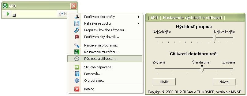 ► Nastavenie rýchlosti prepisu a citlivosti detektora reči