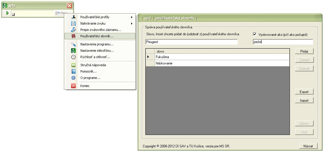 ► Vytvorenie používateľského slovníka